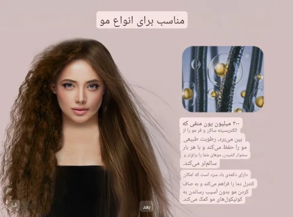 - کنترل هوشمند دما 100 بار در ثانیه برای جلوگیری از آسیب به مو