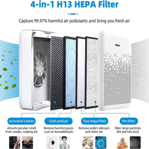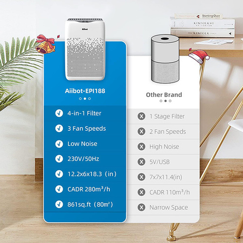 تصفیه هوای Aiibot با فیلتر ترکیبی و فیلتر ضد آلرژی – حذف 99.9٪ آلودگیهای حیوانات خانگی و آشپزخانه، فیلتر HEPA H13 با CADR معادل 280 متر مکعب در ساعت، مناسب برای فضاهایی تا 80 متر مربع مانند آپارتمان یا اتاق سیگار دارای دو فیلتر با عملکردهای متفاوت: این دستگاه تصفیه هوا با دو فیلتر عرضه میشود. فیلتری که داخل دستگاه قرار دارد، یک فیلتر ترکیبی است که شامل پیشفیلتر، فیلتر کربن فعال مخصوص تصفیه هوا، فیلتر HEPA واقعی از نوع H13 و مبدل کاتالیزوری سرد میباشد. این فیلتر قادر است 99.97٪ از ذرات ریز مانند گرد و غبار، کنههای گرد و غبار، گرده گیاهان، کپک، موی حیوانات خانگی و سایر آلرژنها را حذف کند. فیلتر ضد آلرژی نیز به طور ویژه برای حذف آلرژنهایی مانند گرد و غبار، شوره پوست، کنههای گرد و غبار و گرده گیاهان طراحی شده است. این ویژگیها آن را گزینهای عالی برای افراد مبتلا به آلرژی و دارندگان حیوانات خانگی میسازد. عملکرد قدرتمند و یونساز: با نرخ تحویل هوای پاک (CADR) تا 280 متر مکعب در ساعت، این دستگاه قادر است فضاهایی تا 80 متر مربع را در 40 دقیقه و 40 متر مربع را در 20 دقیقه به طور مؤثر تصفیه کند. ژنراتور یون منفی، ذرات باقیمانده در هوا را خنثی کرده و کیفیت هوا را بهطور چشمگیری افزایش میدهد، تا شما همانند حضور در جنگل، هوایی پاک و تازه تنفس کنید. 100٪ بدون تولید اوزون. چهار سطح سرعت باد: دارای 4 حالت سرعت فن (کم، متوسط، زیاد و حالت خواب) که بهراحتی با توجه به نیاز و کیفیت هوای محیط تنظیم میشوند. این دستگاه تصفیه هوا برای افراد دارای آلرژی، صاحبان حیوانات خانگی، افراد سیگاری و نوزادان بسیار مناسب است. حالت خواب بسیار بیصدا با سطح نویز کمتر از 29 دسیبل، خواب شما و خانوادهتان را مختل نخواهد کرد. تایمر و صرفهجویی در انرژی: عملکرد تایمر (1، 2، 3 و 4 ساعته) به شما کمک میکند تا زمان کارکرد دستگاه را تنظیم نمایید. میتوانید در خانه و اتاق خواب از هوای پاک لذت ببرید.